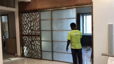 Living dining train partition and Kitchen slide folding door.
