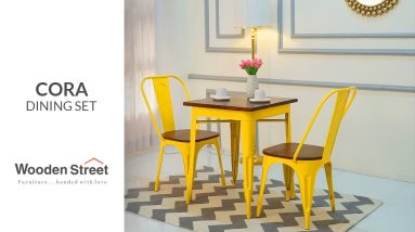 Cora Metal 2 Seater Dining Set (Yellow) | Space Saving Dining Table Designs 2023 | Wooden Street